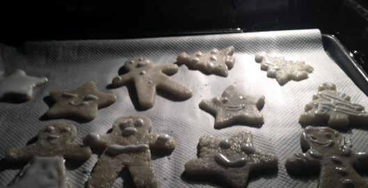 - Puis nappez les petits sablés de ce glaçage. Amusez vous à faire des décorations !