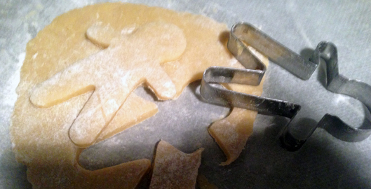 Pour cette recette : du beurre, de la farine,un oeuf,un peu de lait,du sucre,une pincée de sel, une pincée de levure,un peu de cannelle, d’épice pain d’épices, ou même simplement de la vanille…Quelques emportes pièces rigolos et hop vous voilà les mains dans la pâte pour une fournée de petits biscuits de Noël!