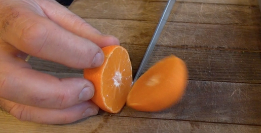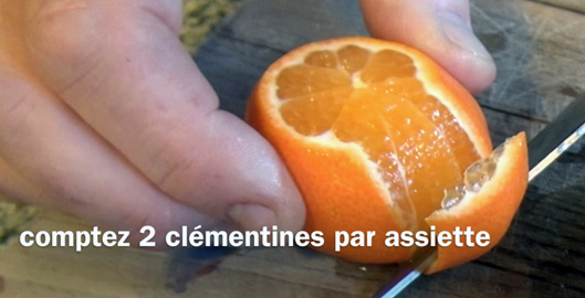 10. [b]Préparer la salade de clémentine : prélevez les segments sur les clémentines non confites!