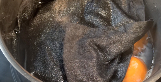 5. Versez le "mélange sucre" dessus à hauteur,puis posez un torchon fin pour que les clémentines restent en immersion totale.Sinon elles remontent! Portez les clémentines à frémissement, puis baissez le feu, et ajoutez sur le torchon une coupelle ou une petite assiette pour garder les clémentines en immersion totale pendant la cuisson.