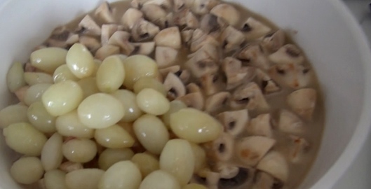 Lorsqu’ils sont cuits débarrassez les oignons dans le récipient avec les champignons.Réservez-les pour plus tard.