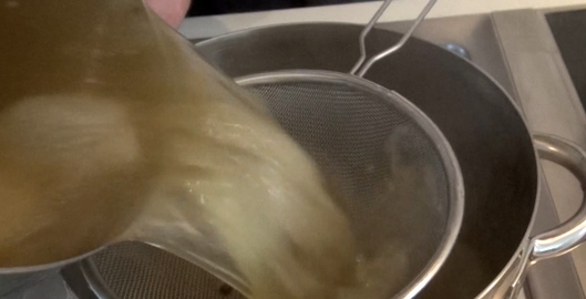 Filtrez le bouillon. Et réservez-le dans une casserole.