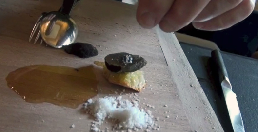 Ça permet aux choses de vraiment s’exprimer …C’est très sympa comme idée pour l’apéritif, quelques amis réunis autour d’une truffe, chacun se prépare sa petite tartine de truffe… sa truffe croq’ au sel!