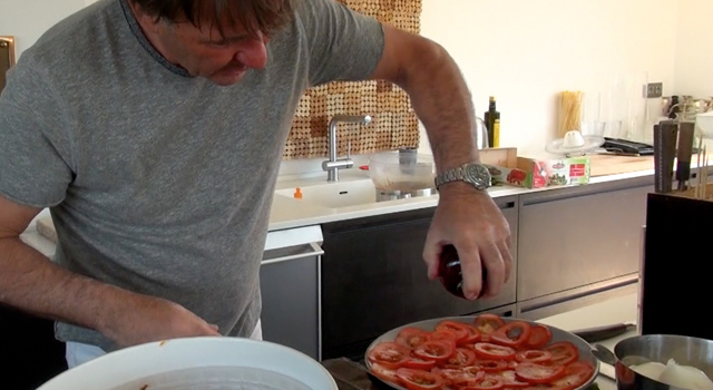 Je tranche les tomates et puis …il y a mon petit truc à découvrir sur la vidéo!