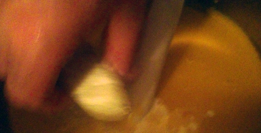 13. Ajoutez 4-5 pincées de curry, ½ grande cuillère de moutarde forte, une noix de beurre un filet de crème fraiche (liquide), quelques gouttes de citron et 4 carrés de kiri ,sel et poivre du moulin; et mixez environ deux minutes. Plus vous mixez plus la préparation est légère et émulsionnée.