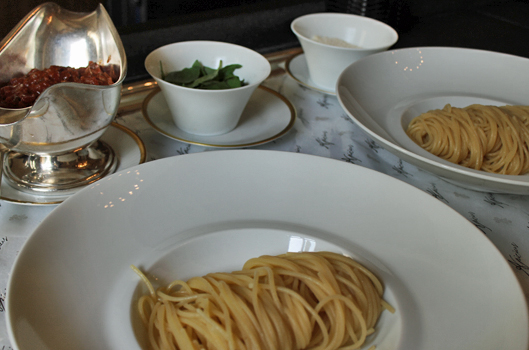 Lorsque vous servez  vos pâtes ou spaghettis bolognaises servez la sauce à côté, avec basilic frais et parmesan.Cette sauce est aussi succulente avec les lasagnes…