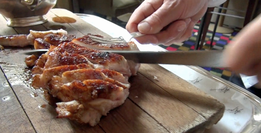 - Préparez votre côte pour le service en retirant l'os et en tranchant la viande comme sur la vidéo! Regardez !La cuisson est parfaite, une couleur blanche rose nacrée, une merveille !